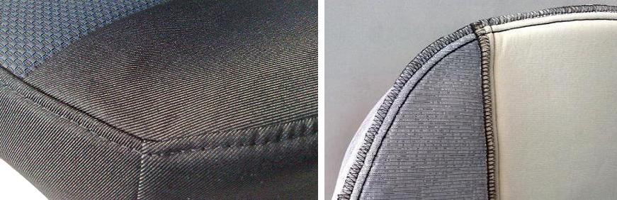 Особливістю даної моделі є наявність логотипу марки автомобіля, або написи з назвою моделі, і оздоблення подвійним декоративним рядком. Також під замовлення можна вибрати будь-яке забарвлення центральної частини сидінь і колір рядка.